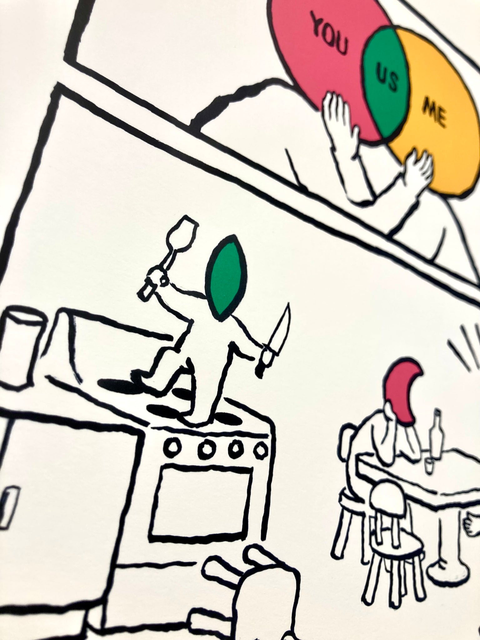 We create something special Venn we get together. This is a museum-quality 9.5 x 13 inches (24 x 33 cm, approximately).giclée cotton rag print.